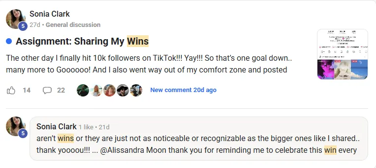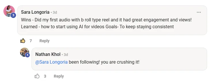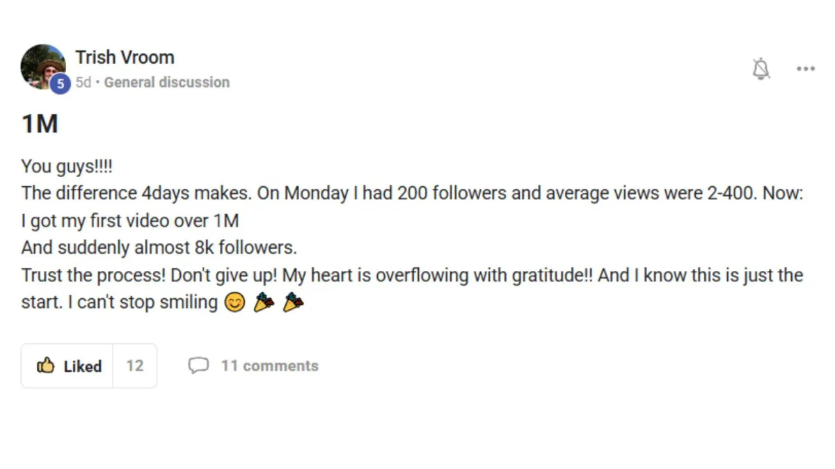 A private community of 150+ creators who are actually doing the work — sharing wins, asking real questions, and growing together